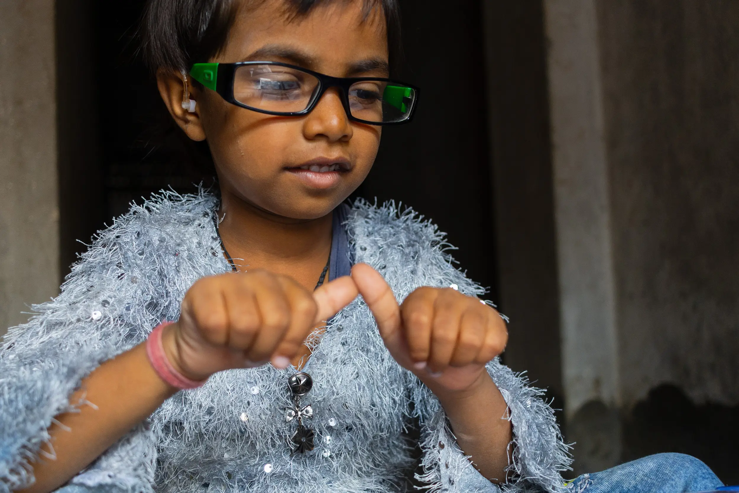 Through specialized tactile communication training and family support from Sense International India, Meera began responding to touch. She learned to identify her mother. She started smiling with recognition.
